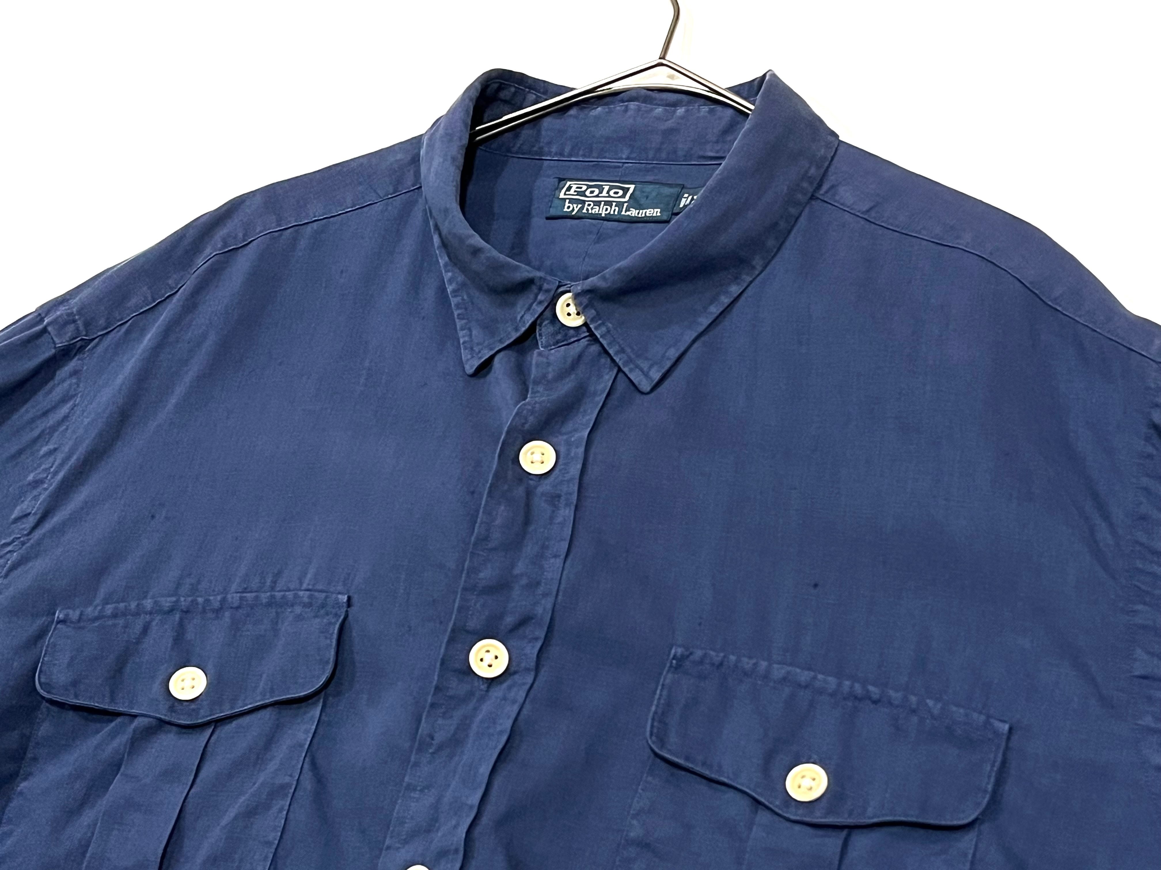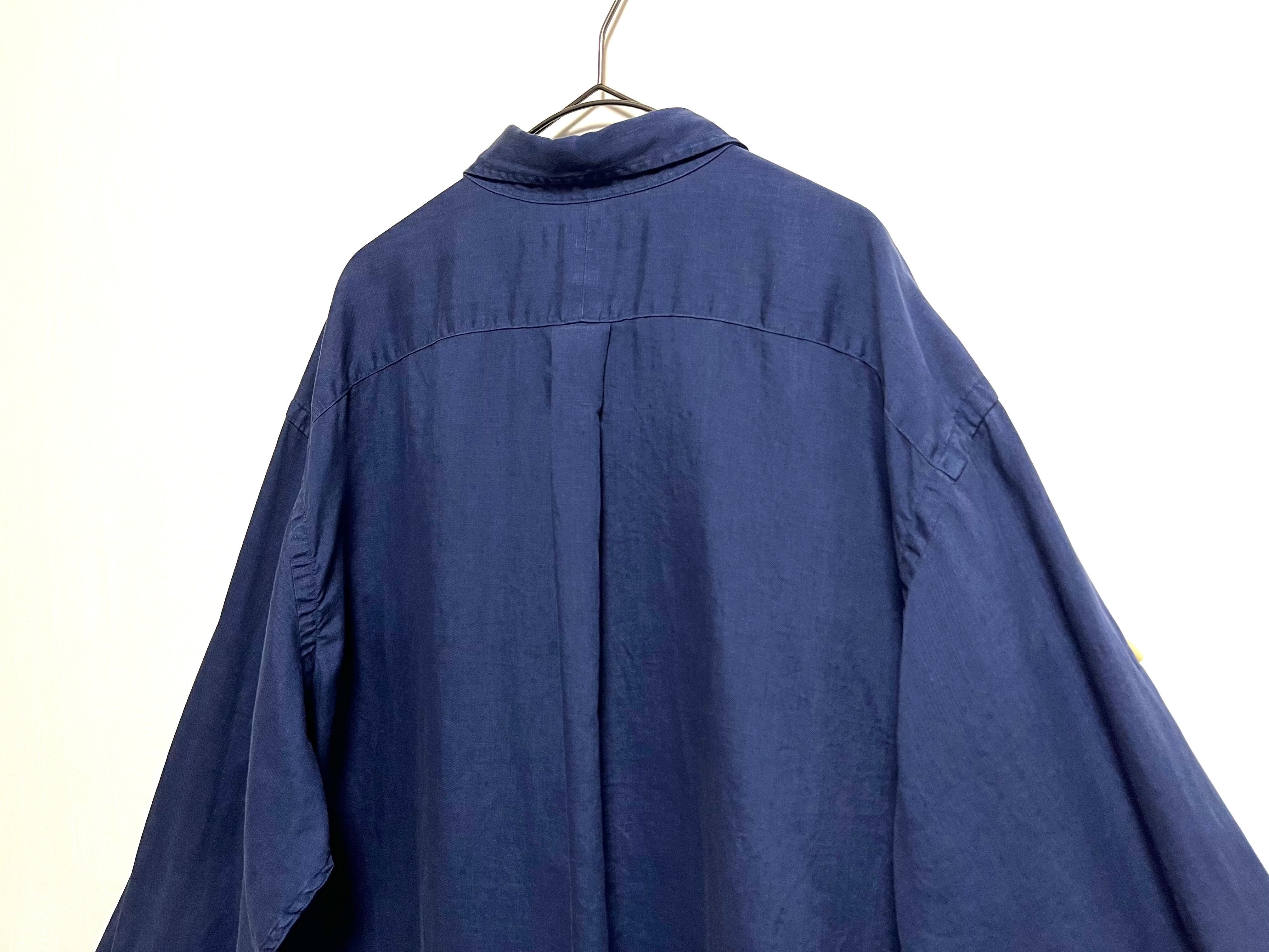 1990's "Ralph Lauren" navy linen fabric long sleeve shirt