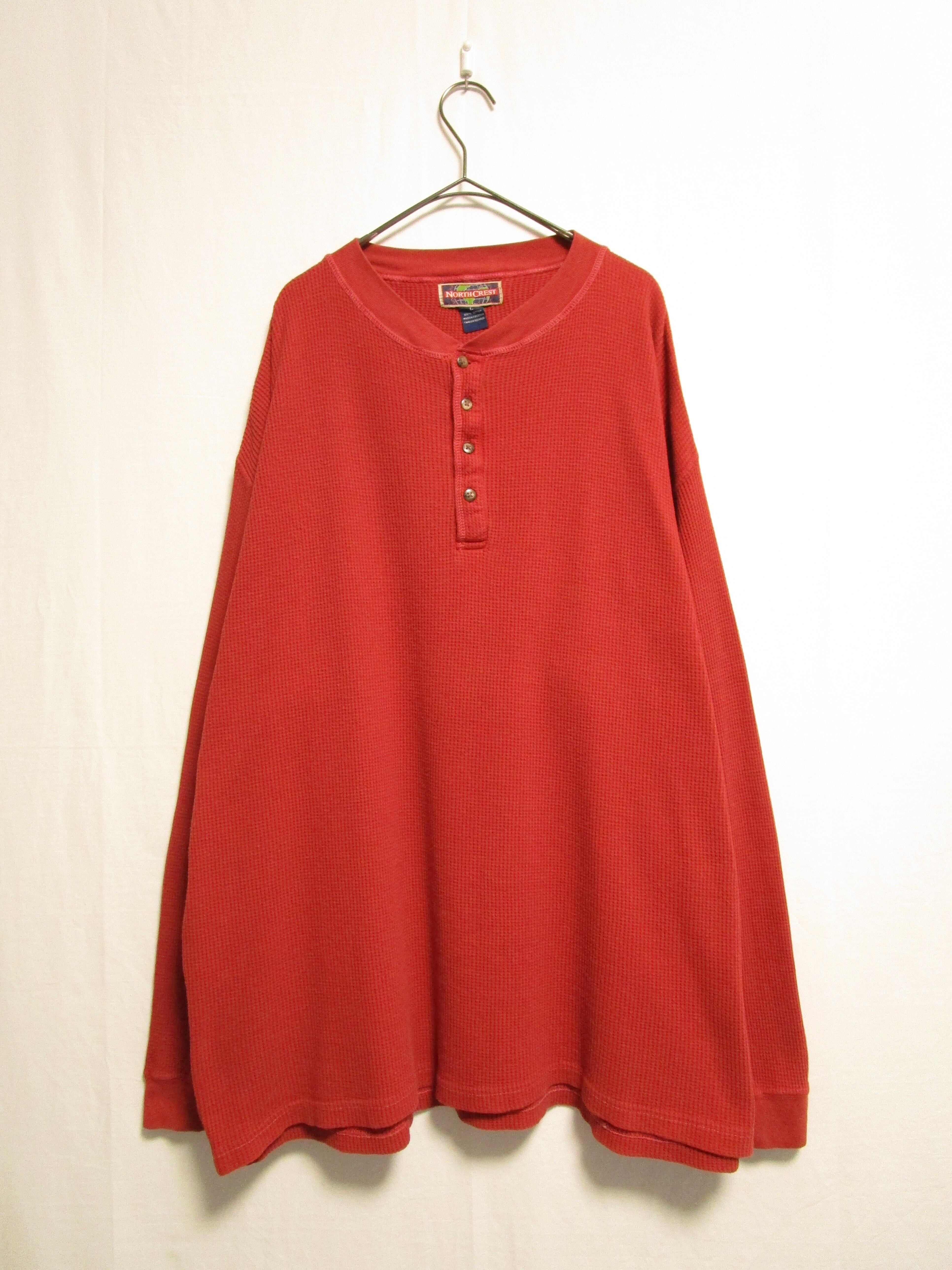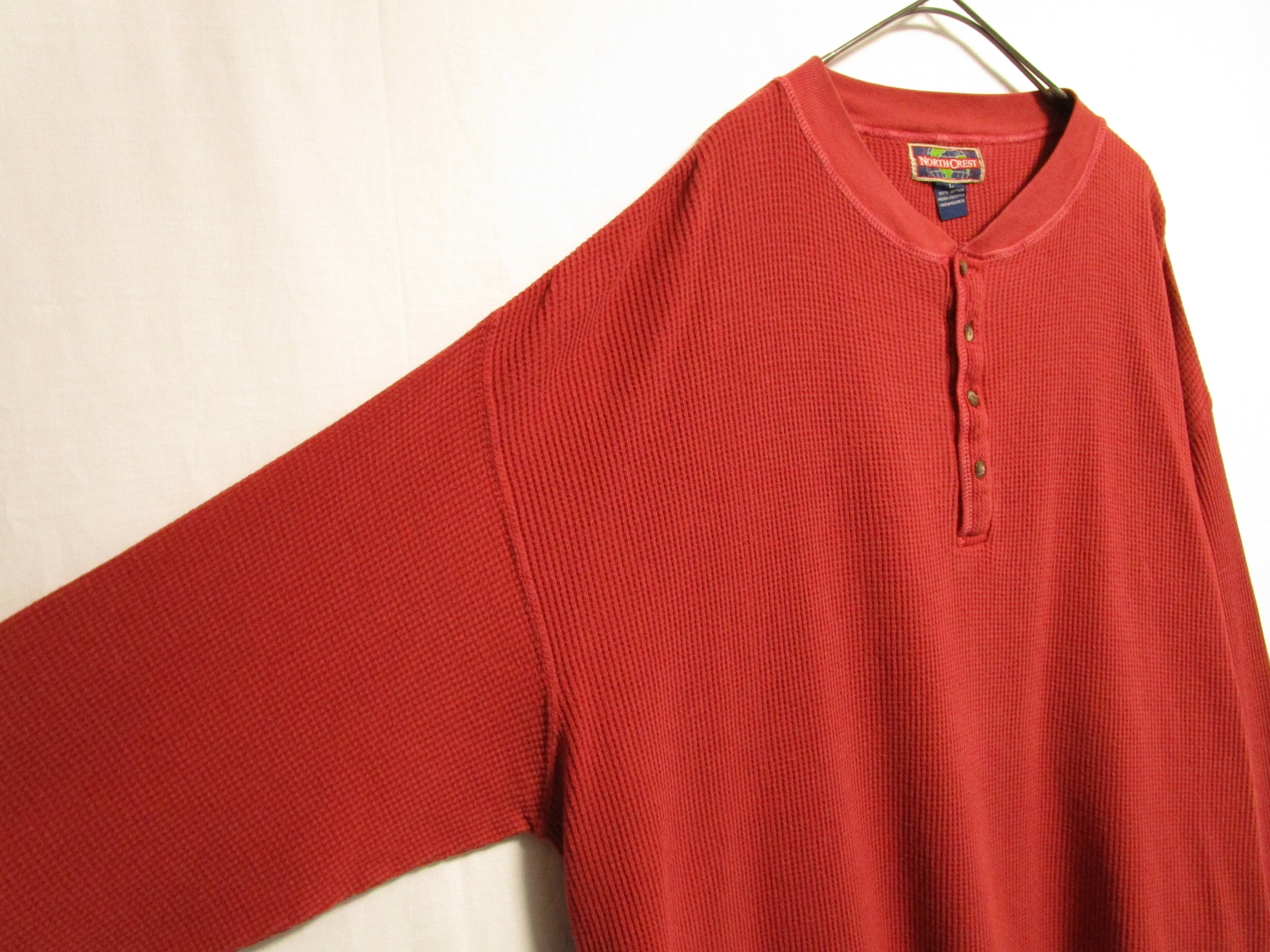 1990's "NORTH CREST" henley neck cotton waffle cut sew
